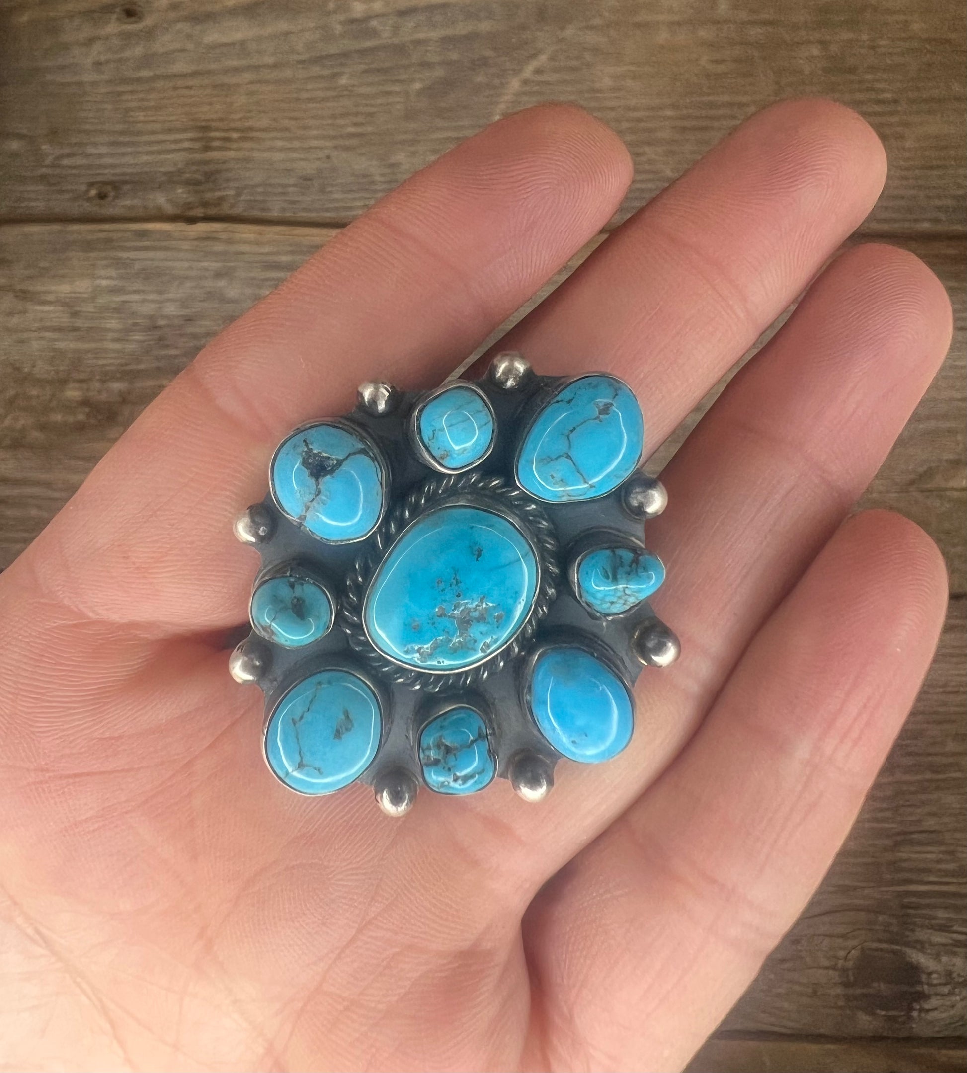 Kingman Turquoise Boat Cluster Sterling Silver Necklace