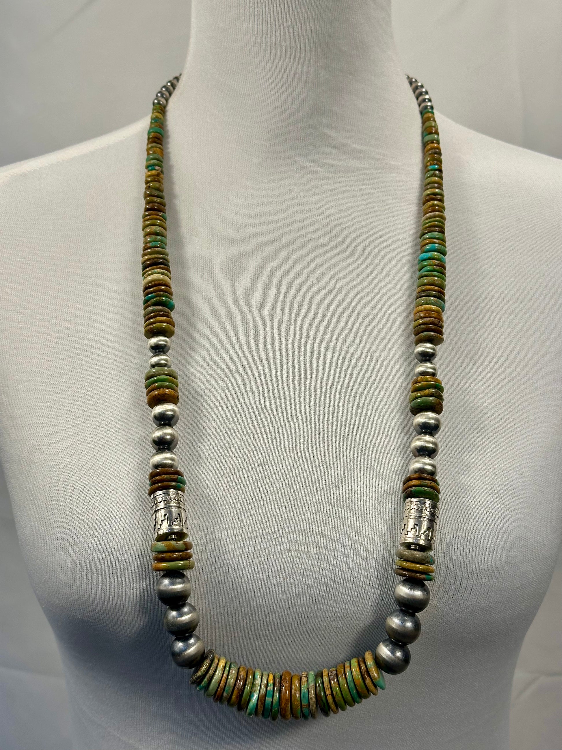 Kingman Turquoise Multi Color Disc & Sterling Silver Pearl Necklace