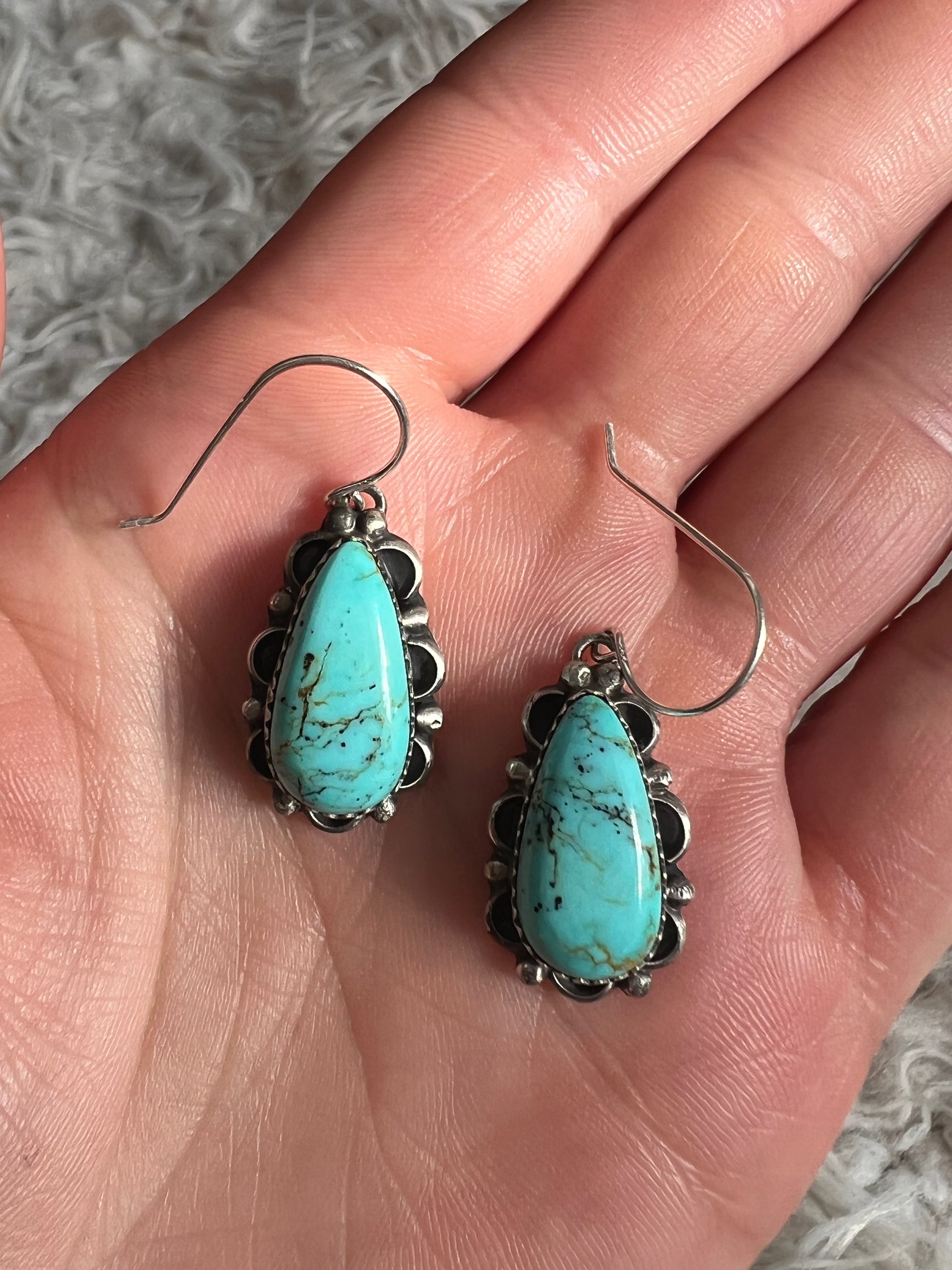 Kingman Turquoise & Pink Conch Lariat & Earrings Set