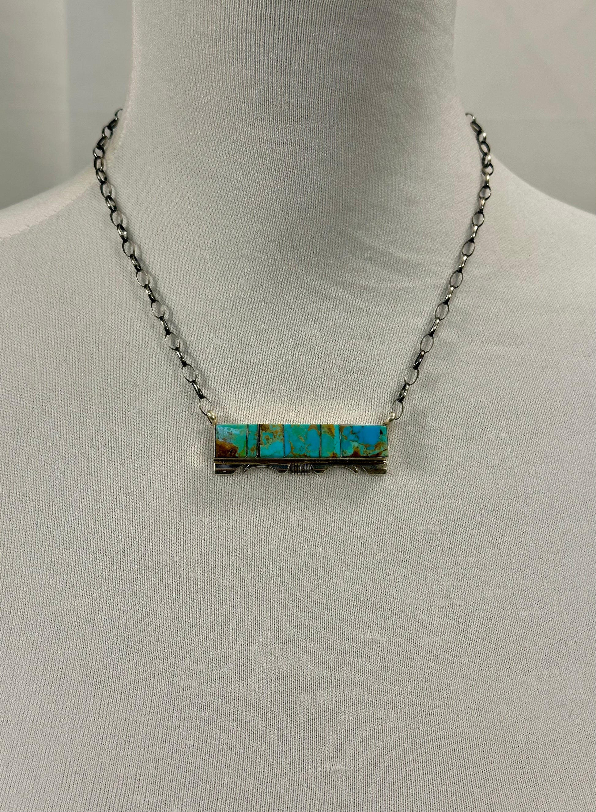 Kingman Turquoise Boat Cluster Sterling Silver Necklace