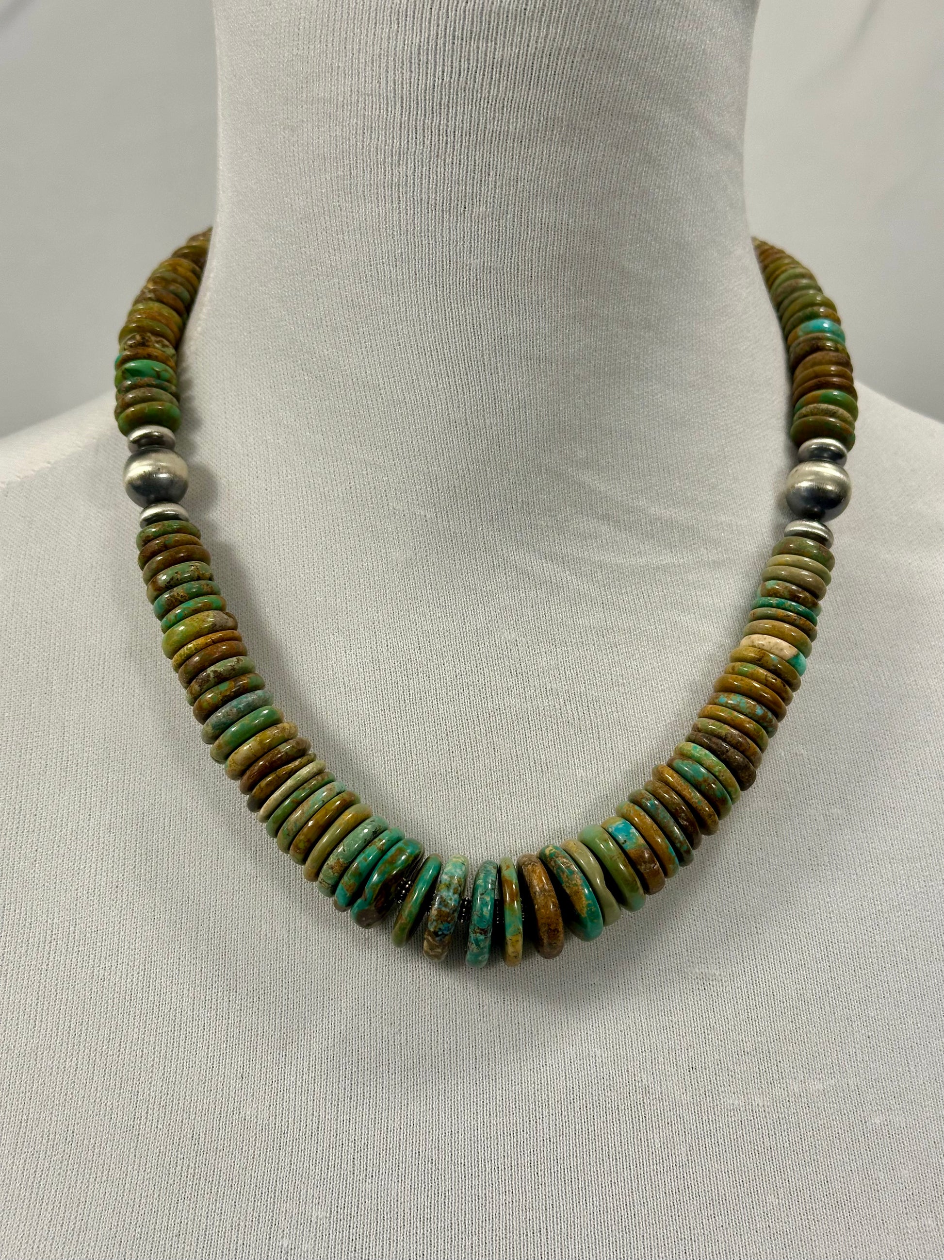 Kingman Turquoise Disc & Sterling Pearl Necklace