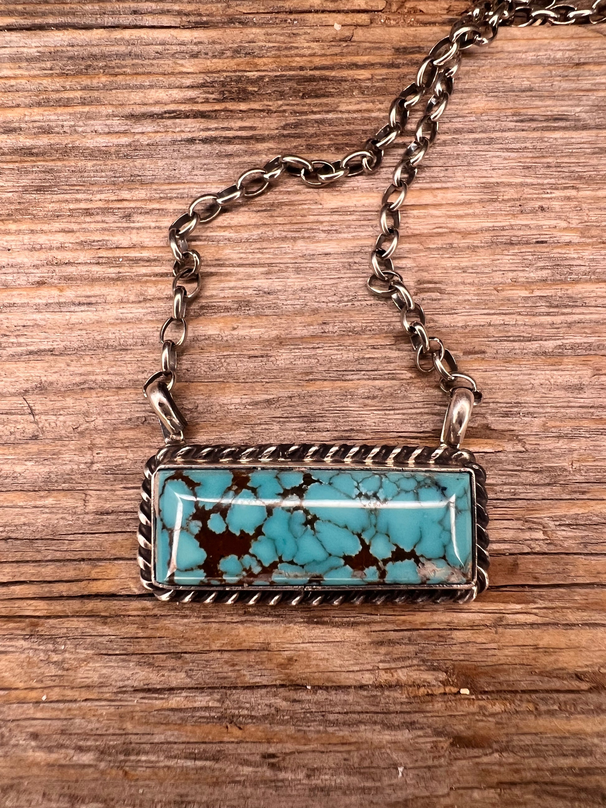 Kingman Turquoise Bar Sterling Silver Necklace
