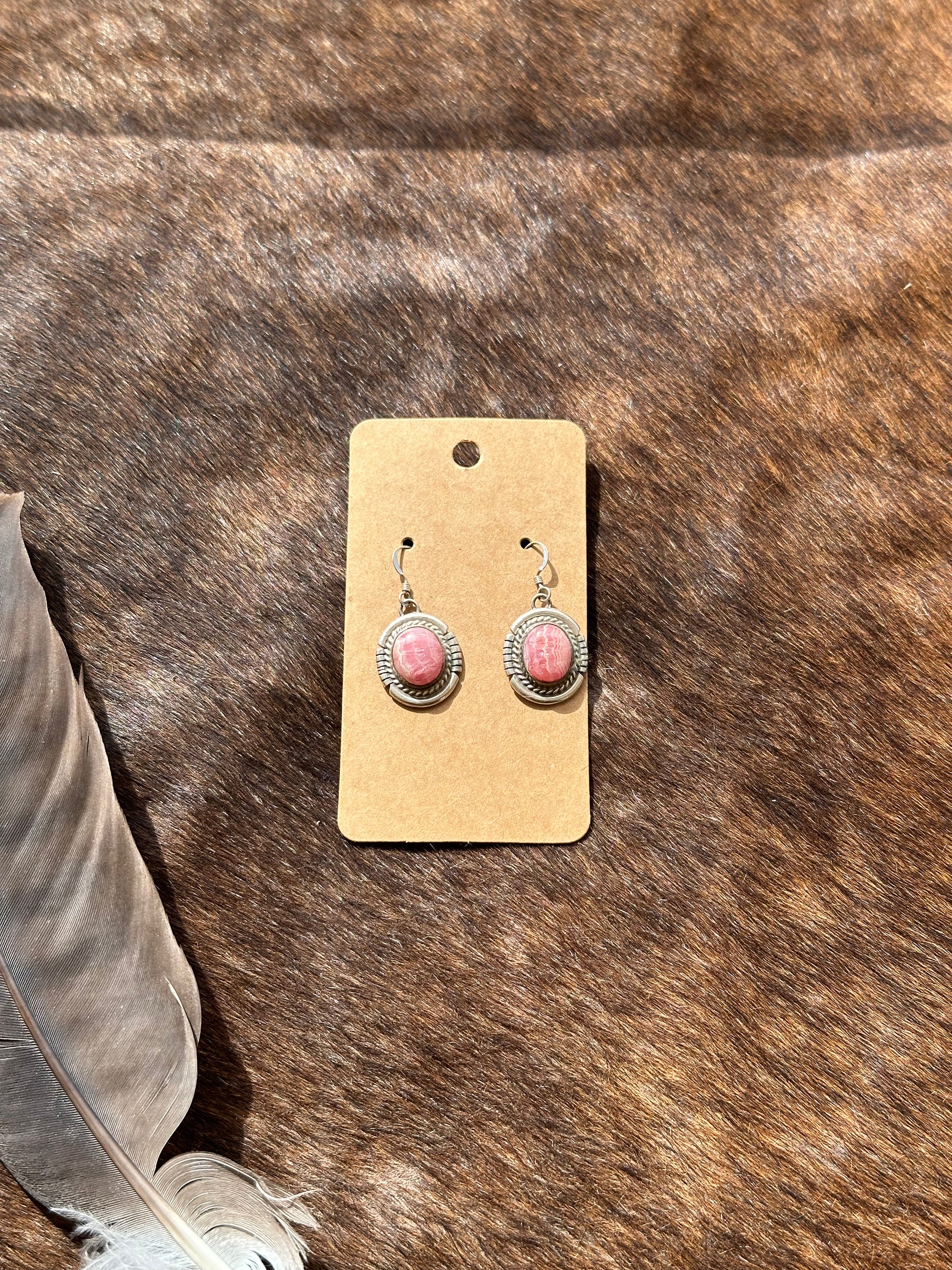 Kingman Turquoise & Pink Conch Lariat & Earrings Set