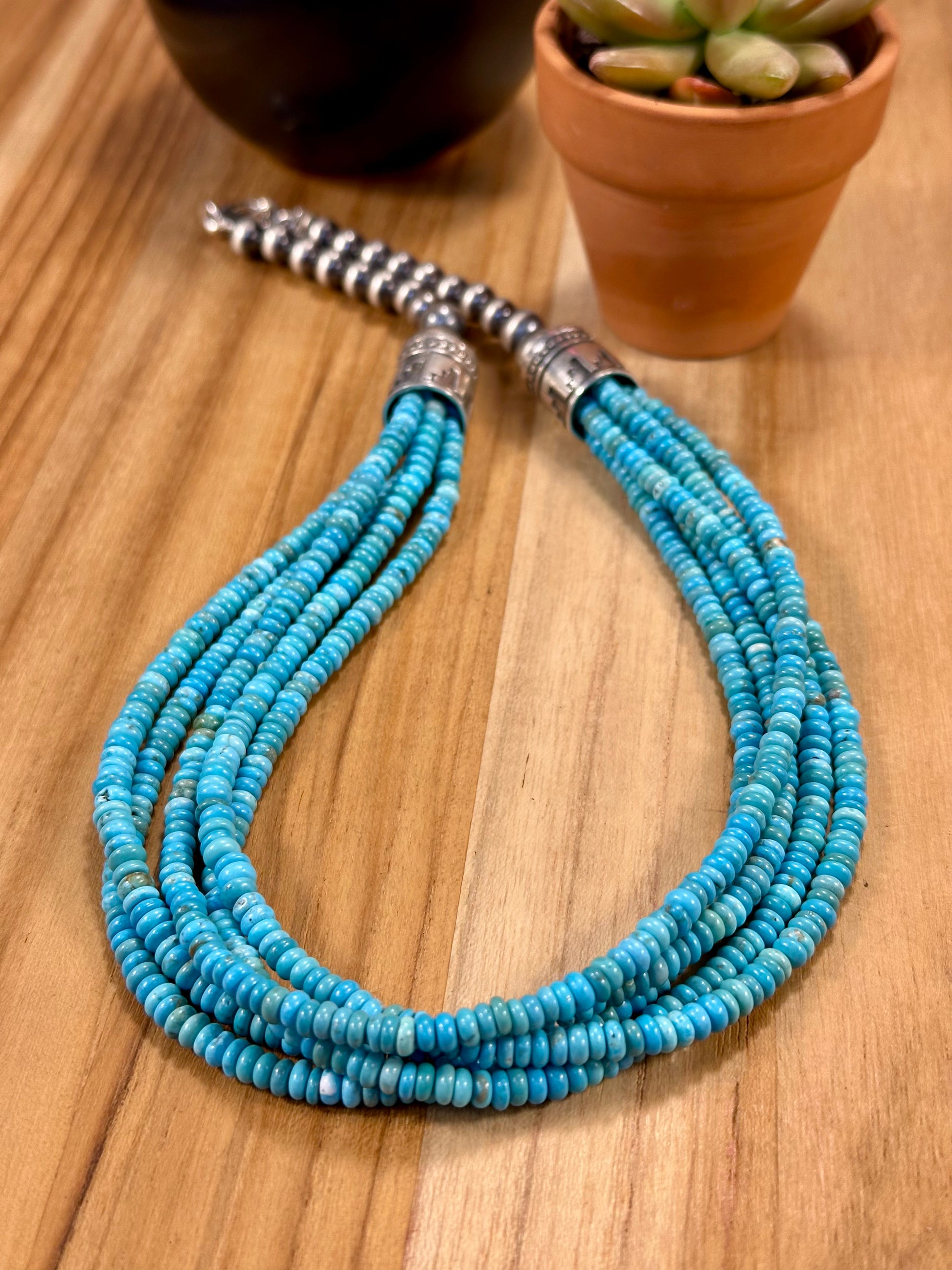 Kingman Turquoise Bead & Sterling Pearl Necklace