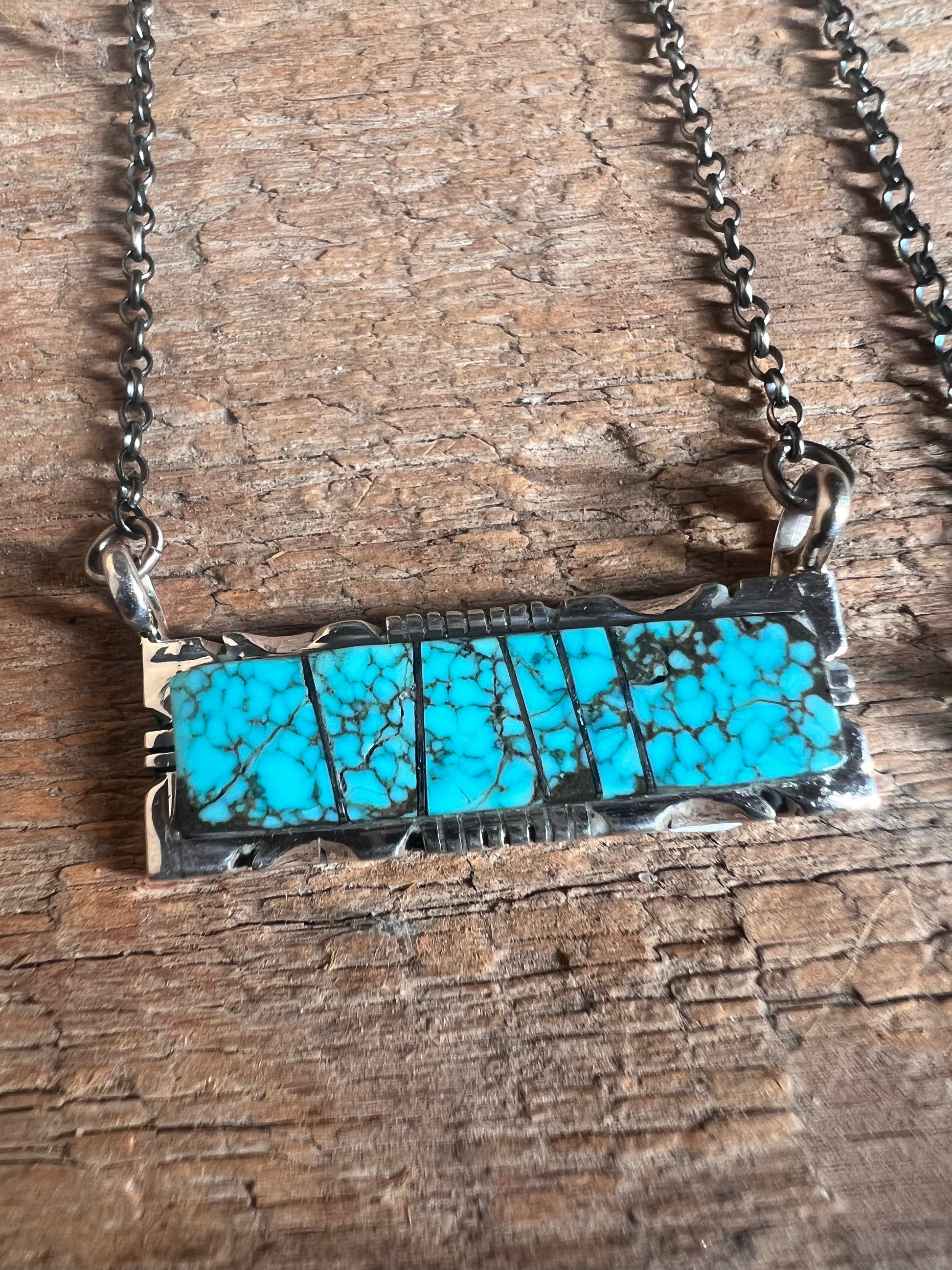 Kingman Turquoise Bar Sterling Silver Necklace